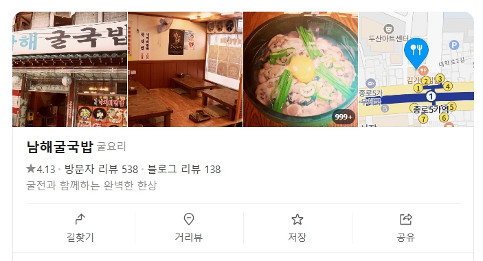 종로와 대학로 인근에 위치해 접근성이 뛰어나며, 점심·저녁 시간대 모두 꾸준히 손님이 찾는 노포 굴국밥 맛집이다.