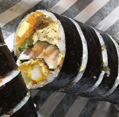일반 분식 김밥과 달리 한 줄만 먹어도 포만감이 높고, 재료 조합이 독특해 재주문율이 높다는 점이 특징이다.
