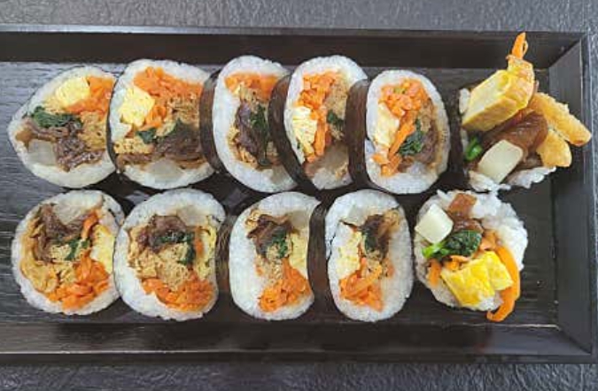 - 박고지 유부김밥 : 5,000원 – 볶은 유부와 박고지로 고기 맛을 살린 기본 김밥